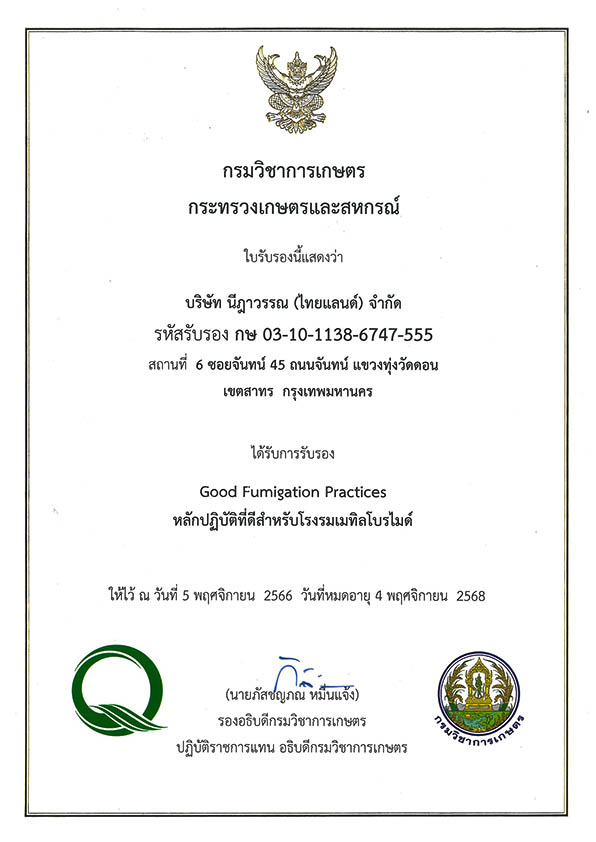 ทางบริษัทมีบริการรมยาสินค้าการเกษตร สินค้าไม้ เฟอร์นิเจอร์วัสดุบรรจุภัณฑ์ไม้ ให้แก่ลูกค้าอย่างมีประสิทธิภาพ และได้มาตรฐาน พนักงานปฏิบัติงานทุกท่านได้ผ่านการฝึกอบรมจากหน่วยงานของกรมวิชาการเกษตรของไทย และการอบรมจากทางประเทศออสเตยเรีย อย่างเชี่ยวชาญ เพื่อให้ลูกค้ามั่นใจในงานบริการของเรา